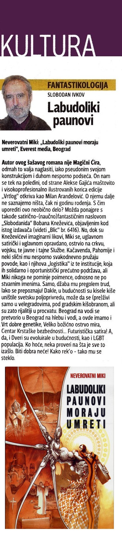 Pisac Milan Aranđelović Prikazi Blic: LABUDOLIKI PAUNOVI